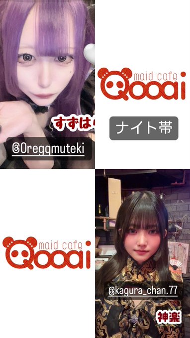 Qooai 心斎橋ミナミ本店【コンカフェ】@Qooai_·🐼本日のQooai心斎橋 ログインキャストさん🐼 ◇みゆ @miyu_Qooai 18-23 ◇ゆっけ丼 @niku_basasi 18-22.5. ◇つゆ @lli_tuyu 19-23 ◆あずにゃん @azu_n_3 23-06 ◆すずはらせんせ @0regqmuteki 23-06 ◆ぽにたま @poninyamu 23-06 ◆とろたく@gojyochandesu 23-06 ミナミにあるコンカフェ Qooaiさらに表示3121