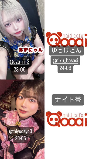 た か は し 。さんがリポストQooai 心斎橋ミナミ本店【コンカフェ】@Qooai_·🐼本日のQooai心斎橋 ログインキャストさん🐼 ◇うい @u1c_n_ 18-23 ◇ほにゃ @nfqzy 18-23 ◇みや @Qooai_miya 18-23 ◇あにゃ@2ya0125 18-22.5 ◆すずはらせんせ @0regqmuteki 23-06 ◆あずにゃん @azu_n_3 23-06 ◆たかはし @Q_tkhs 23-06 ミナミにあるコンカフェ Qooai -クーアイ-さらに表示12316