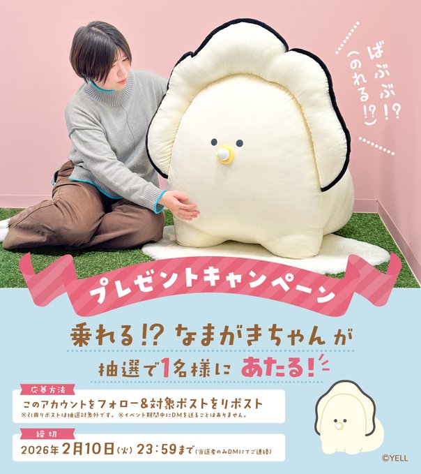 ほにゃさんさんがリポストつぶらな瞳の仲間達【公式】@tsuburana_aqua·🎁🎁プレゼント企画🎁🎁 🦪 乗れる!?なまがきちゃん 🚗 抽選で 1 名様 にプレゼント✨ 7周年記念のプレゼントは ちょ~~びっぐさいずのなまがきちゃんだよ🎶 📋応募方法 ① @tsuburana_aqua をフォロー ② このポストをリポスト(2月10日23:59まで) ※引用RPは抽選対象外ですさらに表示2618,5845,51332万