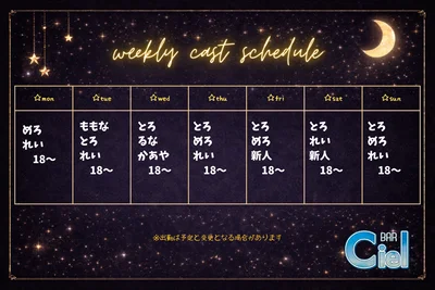 キャストの出勤シフトです。