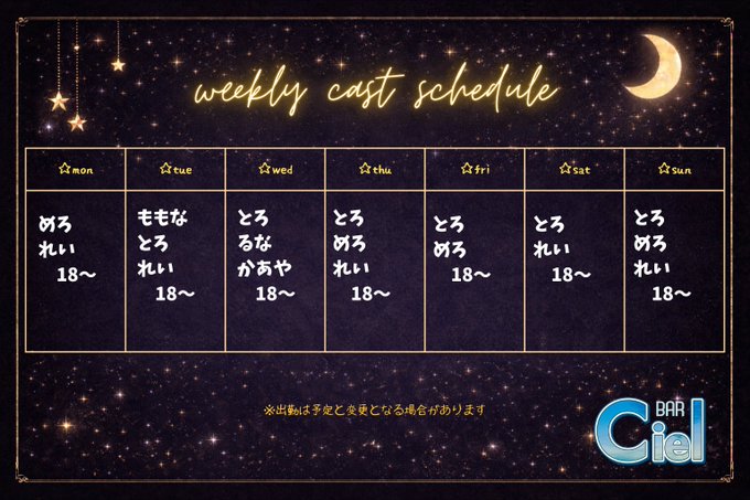 コスプレbar Ciel(シエル)@bar_Ciel2023·今週2/9〜15シフトです☆ どうぞよろしくお願い致します! #しえる #コスプレバー #ガールズバー #コンセプトカフェ #コンカフェ #BAR #大阪 #日本橋 #千日前 #難波61