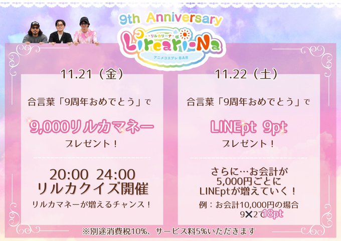- 月〜木:19:00〜24:00/金・土:19:00〜26:00