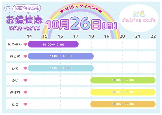 - 平日19〜23時半、金土18〜04時半、日17〜23時