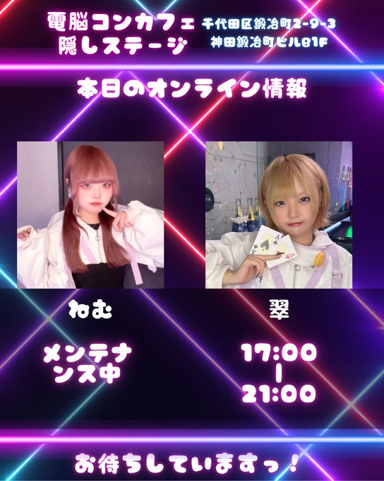 - 月水木金土日/17:00~5:00 ※祝日変動の可能性有