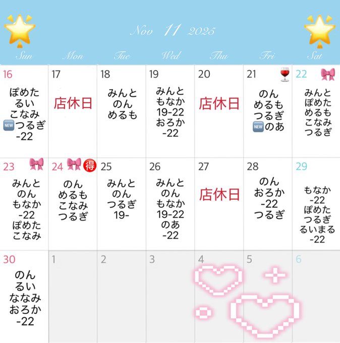 - 不定休のため「キャストの出勤情報」やツイッターを確認!