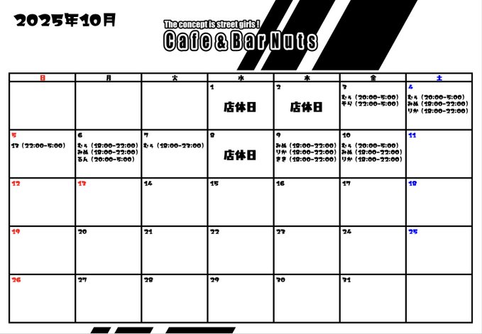 - 【月〜木】18時~23:30【金、土】12時〜5:00【日】12時〜23:30