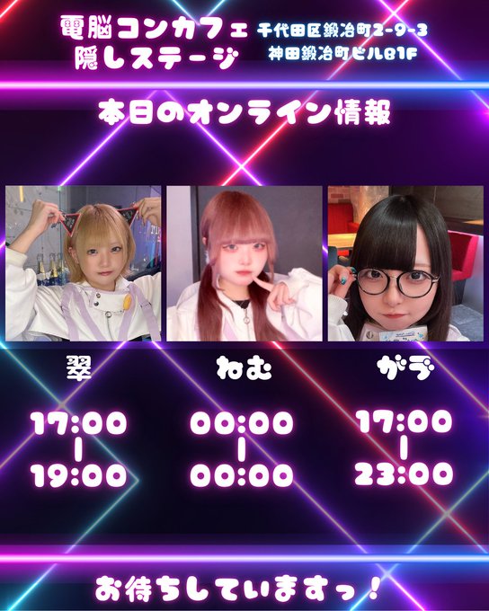 - 月~木 19時~3時 金土祝前日19時~5時 日曜 18時~23時