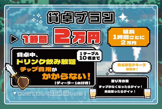 - 平日19〜23時半、金土18〜04時半、日17〜23時
