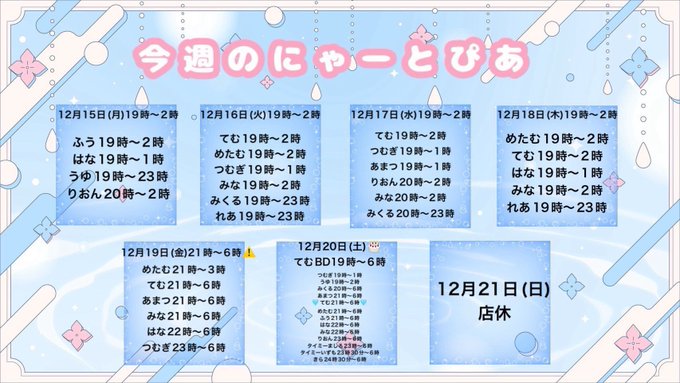 - 火水木19時~2時 金土19時~6時 日19時〜23時30分 月 店休