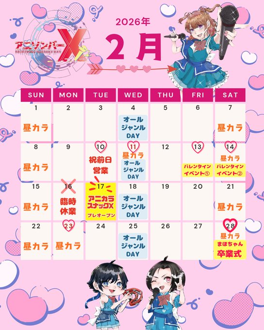 札幌・すすきの アニソンバーX2/13.14 バレンタイン🎪アニソンバーX札幌すすきの@anisonbarX·🗓2月13日(金) ⏰18:00~25:00 ⸜❄️⸝⛄️ #アニソンバーX ⛄️⸜❄️⸝ ✨💝バレタインイベント①日目💝✨ ♥️🍫✨カラフルメイドDAY✨🍫♥️ 【本日の盛り上げ隊】 💖ななお 🍫あおい 💖るな 🍫いろは ~23時半 🎀こはるマネージャー 19時~ 💖すりみ 🍫るい 20時~ 💖あんなさらに表示2152