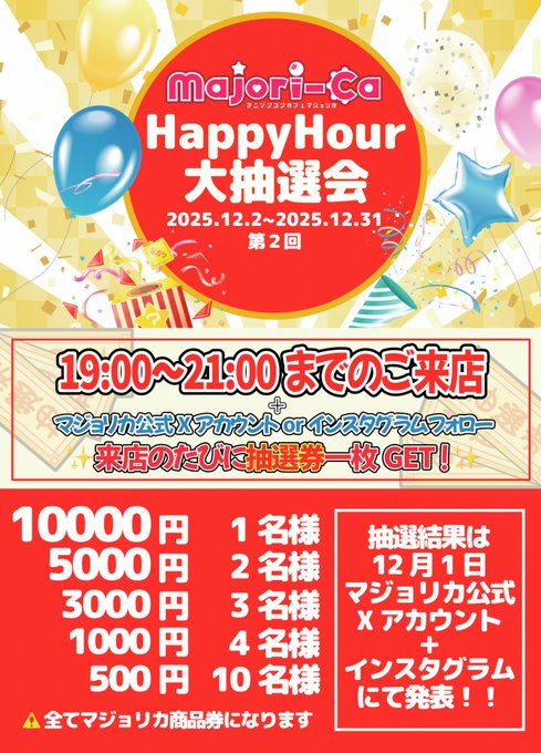 札幌・すすきの アニソンコンカフェマジョリカアニソンバーマジョリカ@majori_ca·■□■12月12日(金)19:00~last■□■ 【HappyHour大抽選会&ジョッキフェア開催中】 ■出勤情報■ 19:00~last ▶︎ありお ▶︎はる ▶︎ゆとり ▶︎えま ▶︎あさひな ▶︎やもり ▶︎てぃあら http://conceptbar.info/blog_majori-ca/ 近日イベント 12/14~20あさひなBDウィーク #コンカフェ #アニソンバーContent warning: Sensitive contentThe author labeled this post as containing sensitive content.表示12130