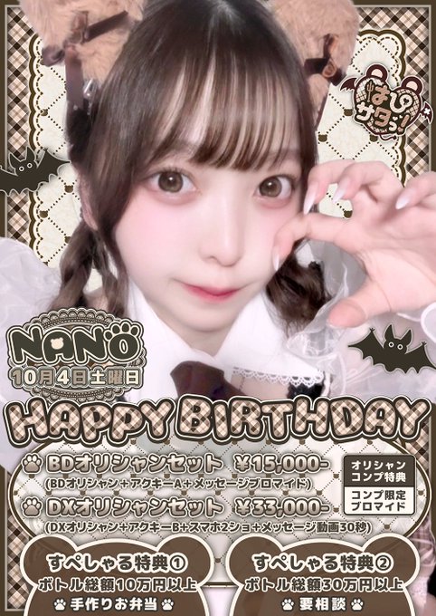 なのなに 10/4 BD@HAPISATA_NANO·15時間日付回ってもう明日になったー🥲どきどき引用はぴサタ札幌店👿HAPPY HONEY SATAN👿札幌コンカフェ@HAPI_SATA·9月1日୨ෆ୧┈┈┈┈┈┈┈┈┈┈┈┈┈┈┈୨ෆ୧ 10/4(土) 『なのなのバースデーイベント』 開催します! オリシャン、アクキーなど 限定特典を多数ご用意しておりますので 奴隷の皆様のご来界お待ちしております👿さらに表示113597