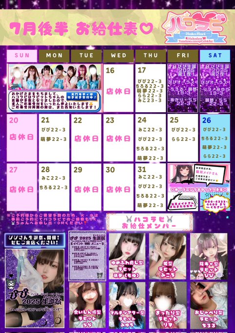 ハコラビ【函館Yumekawaコンセプトcafe&bar】@hakoravi·7月21日昨日店休いただき、 22時〜オープンしております❣️ 🐰ぴぴ(@150cm_ore)22-3 🐰萌夢(@moyu_hkrv)22-3 ぴぴさんお誕生日の後祝いも まだまだお待ち申し上げております🙇 今日も暑いですね! いっぱい飲みましょう✨ #函館コンカフェ #ハコラビ引用ハコラビ【函館Yumekawaコンセプトcafe&bar】@hakoravi·7月21日ぴぴさん生誕祭2025は、沢山のご来店 誠にありがとうございました🙇 本日も、22時〜オープンです❣️ 🐰ぴぴ(@150cm_ore)22-3 🐰萌夢(@moyu_hkrv)22-3 今日も暑いですね! いっぱい飲みましょう✨ ぴぴさんお誕生日の後祝いも まだまだお待ち申し上げております🙇 #函館コンカフェ #ハコラビ2432