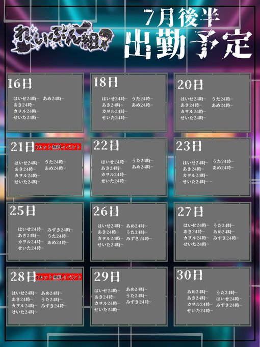 固定《れいぶん組》すすきのメンズコンカフェ@Raven_susukino·7月後半予定表🗓367