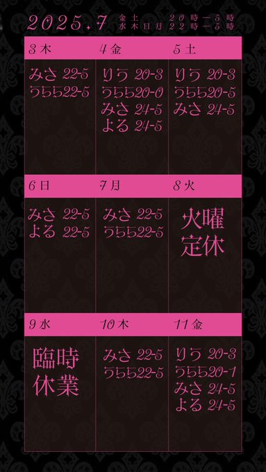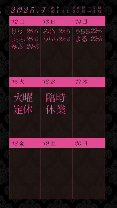 てでぃ HOLIC@teddyholi·7月3週目のお給仕カレンダーです🧸22694