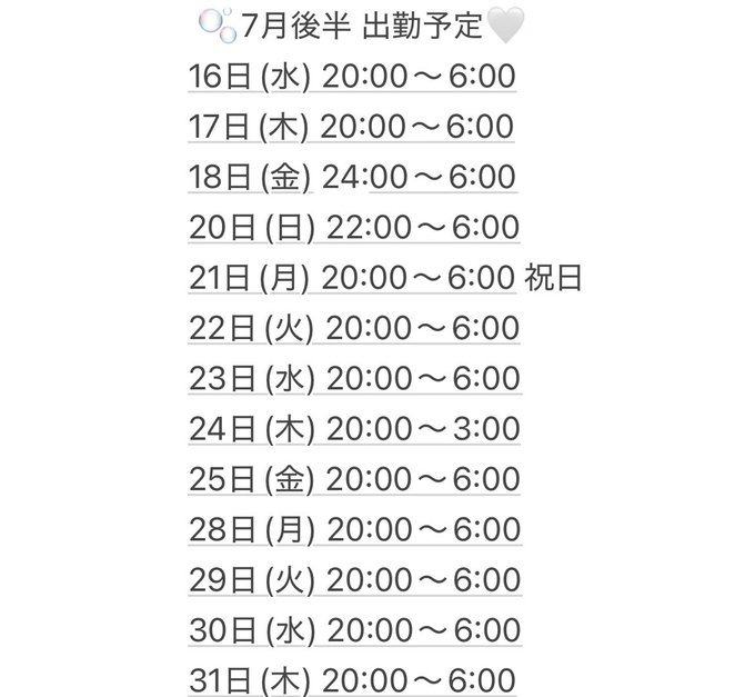 DOLcE ドルチェ 札幌すすきの コンカフェ@dolce_sapporo·7月13日恐れ入りますが本日臨時休業です🙇♀️ 明日22:00〜お待ちしております引用DOLcE ドルチェ 札幌すすきの コンカフェ@dolce_sapporo·7月2日『𝕯𝕺𝕷𝕮𝕰-ドルチェ-』 7月前半の出勤表です🎀 皆様のご来店お待ちしてます✨ #コンカフェ #すすきのコンカフェ #すすきの #BAR #コンセプトバー357