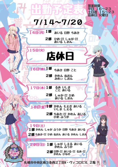 すた~ず@札幌すすきの@stars_at_saporo·7月15日出勤予定変更いたしまして、 神崎ルナ:早番→通し サワディー:遅番→休み となっております引用すた~ず@札幌すすきの@stars_at_saporo·7月15日開店しましたー おはすきー! 蒸し暑いお外ですね・・・そんな時は涼しいすた〜ず札幌すすきのへ!(屮゚□゚)屮 身の内は熱々のスタッフが待っています!!👍🏻 早番:夏希、セン、神崎ルナ 中番:はねる 遅番:玄玄、サワディー #アニソンカフェ #アニソンバー #札幌 #すすきの23728