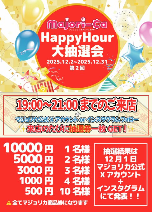 札幌・すすきの アニソンコンカフェマジョリカアニソンバーマジョリカ@majori_ca·■□■12月13日(土)19:00~last■□■ 【HappyHour大抽選会&ジョッキフェア開催中】 ■出勤情報■ 19:00~last ▶︎りなてぃ ▶︎ありお ▶︎はる ▶︎ゆとり ▶︎えま ▶︎やもり ▶︎あさひな ▶︎てぃあら http://conceptbar.info/blog_majori-ca/ 近日イベント 12/14~20あさひなBDウィーク #コンカフェContent warning: Sensitive contentThe author labeled this post as containing sensitive content.表示12117