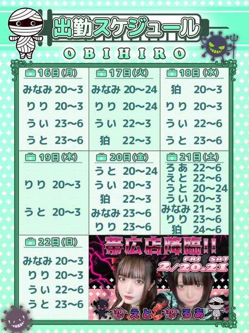 旭川・帯広 - 夢幻病棟 - はーれむはあと夢幻病棟『はーれむはぁと』❤帯広 コンカフェ 朝6時まで営業中~@Harem_Heart·6時間うい休み みなみ3時までに変更です💉引用夢幻病棟『はーれむはぁと』❤帯広 コンカフェ 朝6時まで営業中~@Harem_Heart·12時間本日2/17(火)は ◎開院時間:20:00〜3:00 となります🩺 🏥本日の勤務ナース 💗みなみ @HAREM_minami 💗りり @HAREM_riri 💗うい @HAREM_ui 💗狛 @HAREM_haku 【Instagram】 ▶️http://instagram.com/harem.heart/ 【TikTok】 ➡️http://tiktok.com/@haremheart 本日も患者の皆様のご来院 お待ちしております💕さらに表示1139