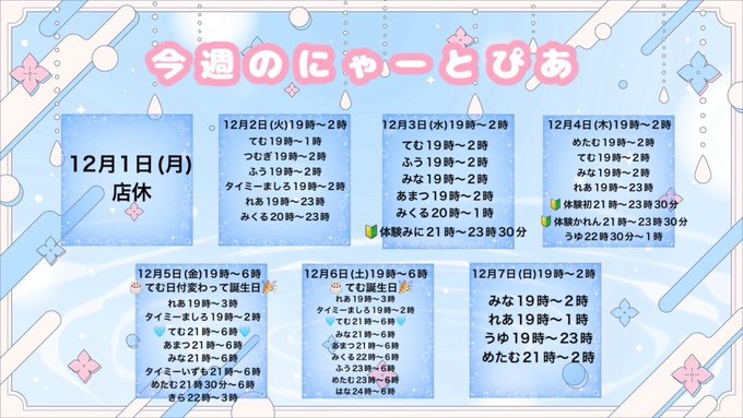 星波🌌@ビジュラム札幌すすきの@bjlmspk_sena·🌌12月前半の入国予定🌌 5日  17:00~23:00 6日  17:00~25:00 7日  17:00~22:00 9日  17:00~22:00 12日  17:00~23:00 13日  17:00~23:00 🌟5~8日は十二星座の祈り🌌 ご予約等はdmに! 天使様のことお待ちしております✨1386