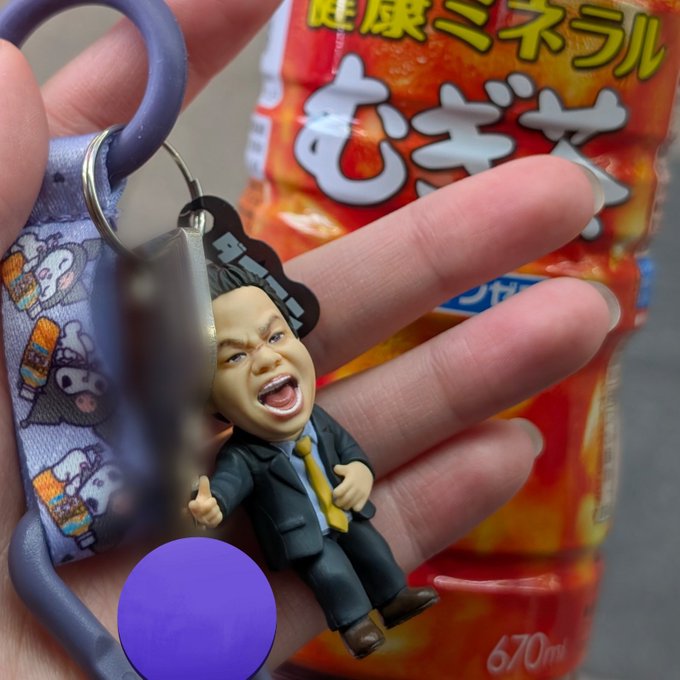 なぎ@TKpr_nagi·んでクロミちゃんのペットボトルホルダーを手に入れたりしまして、、鍵つけたりしまして、 この間、配信で自慢したけどみんな寝てて誰も反応してくれなかったゴイゴイスー津田をつけたりしまして いぇい #本日のゴイゴイスーなぎ9102