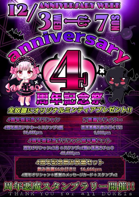 札幌・すすきの 『はぴサタっ!』HAPPY HONEY SATANはぴサタ札幌店👿HAPPY HONEY SATAN👿札幌コンカフェ@HAPI_SATA·♡𓇬𓇬♡𓇬𓇬♡𓇬𓇬♡𓇬𓇬♡𓇬𓇬♡𓇬𓇬♡𓇬𓇬♡𓇬𓇬♡𓇬𓇬♡ 【イベントのお知らせ】 12/3(水)~7(日) 『4th ANNIVERSARY WEEK』 開催します👿 ♡𓇬𓇬♡𓇬𓇬♡𓇬𓇬♡𓇬𓇬♡𓇬𓇬♡𓇬𓇬♡𓇬𓇬♡𓇬𓇬♡𓇬𓇬♡ 【12/1(月)~12/7(日)】さらに表示2354