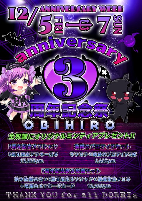 旭川・帯広 はぴサタ帯広店-HAPPY HONEY SATAN-吉良みおナリさんがリポストはぴサタ帯広店👿HAPPY HONEY SATAN👿帯広コンカフェ@HAPISATA_ob·【イベントのおしらせ📢】 12/5(金)6(土)7(日)は 《👿はぴサタ帯広店3周年イベント👿》 開催します‼ イベント限定メニューを多数用意して たくさんの奴隷の皆様のご来店を お待ちしております👿 #帯広 #コンカフェ #はぴサタ #イベント #3周年33146
