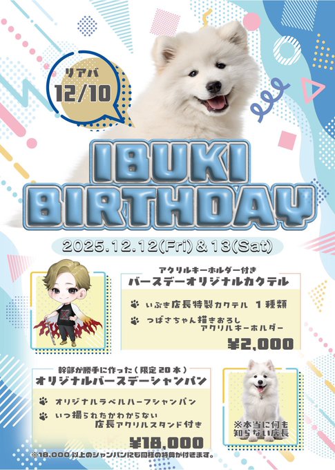 札幌・すすきの アニソンバーX11/28&29すりみBDイベント@アニソンバーX札幌すすきのさんがリポストひなの💎アニソンバーX@hinano_anison·#アニソンバーX いぶきさんバースデー🎂 席空きました!お祝いチャンスですお早めに🐶🐶🐶530443