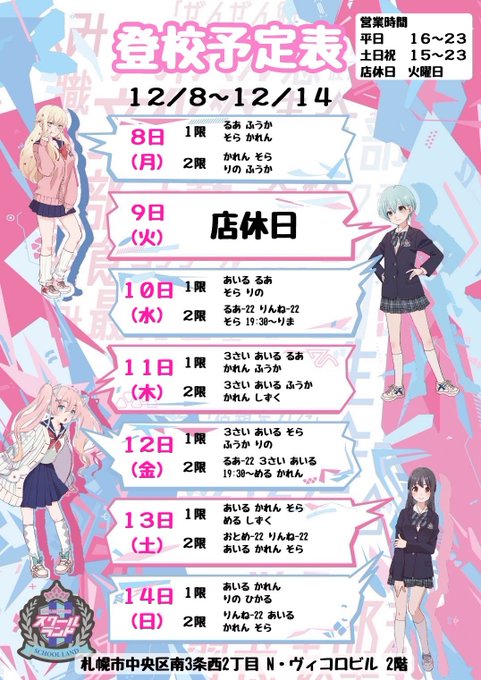 札幌・すすきの スクールランド固定華恋@スクールランド@rn4_schoolland_·今週いるひ‼️ #コンカフェ #すすきのコンカフェ596