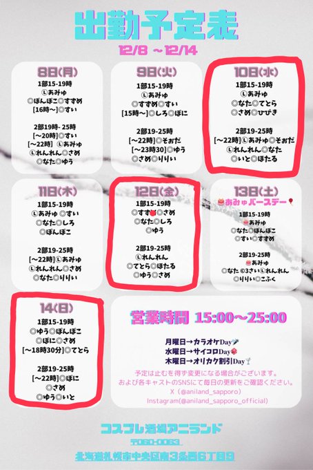 札幌・すすきの アニランドあみゅ@12/13BD@amyu_aniland_·4時間15-22‼️会いに来て~🥲 #アニランド #コンカフェ引用あみゅ@12/13BD@amyu_aniland_·11月2日15-19います #アニランド #コンカフェ111421