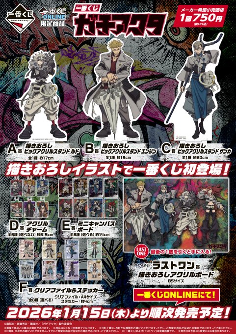 旭川・帯広 もふらんどアデハデ 九十九 と申します。さんがリポスト正方形のプロフィール画像一番くじ(BANDAI SPIRITS)@ichibanKUJI·◤◢◤◢◤◢◤◢◤◢ 速報:#ガチアクタ 一番くじで初登場‼️ ◤◢◤◢◤◢◤◢◤◢ 「一番くじ ガチアクタ」 2026年1月15日 #一番くじONLINE で発売決定⚡ 描きおろしイラストを使用した 約17cm~の #ビッグアクリルスタンド を はじめとする充実のラインナップ! ➡️詳細 https://1kuji.com/products/gachiakuta…257012,61112万