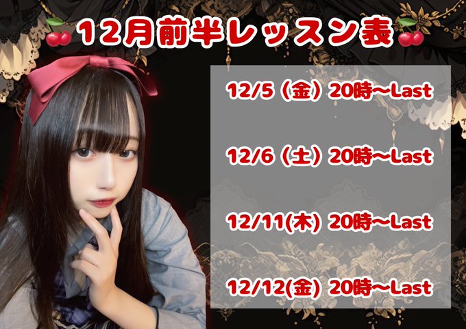 札幌・すすきの TKプロダクション小樽店固定ありす☂️@TKpr_alice·大至急作りますた 12月前半もよろしくおねがいしまふ🍒117324