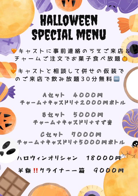 札幌・すすきの 推しが天使な件うるかもしれない@uru8c·10月21日コンカフェでいちばん好きなイベント!! たくさん衣装用意した👮👲👯♀️👰♀️😈☦️ 日数たくさんあるので来店・遠隔共におまちしてます! 告知の写真めっちゃ昔の使ったからこの人誰状況かもで死引用🩷推しが天使な件👼🏻🪽すすきの第5桂和4F@oshiten_keiwa·10月21日🎃HALLOWEEN イベント🕸 .*・゚来てくれなきゃいたずらしちゃうぞ.゚・*. ▶▷▶ 10/24-10/31 天使ちゃんが色々な仮装に変身するよ👻 🎃イベント限定メニュー🎃 ♥限定ブロマイド付きオリカク¥1.200 𖤐 ̖́-¥12.000以上のシャンパンで〈特別版〉ブロマイドプレゼント👻♡16361