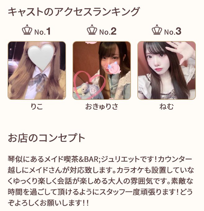 札幌・すすきの メイド喫茶&BAR ジュリエットメイド喫茶&BAR ジュリエット 代表取締役@JulietKotoni·今夜と明日の出勤表出しておきました。 月曜日にりおなさん追加するかも!?パパ次第! #琴似ジュリエット111