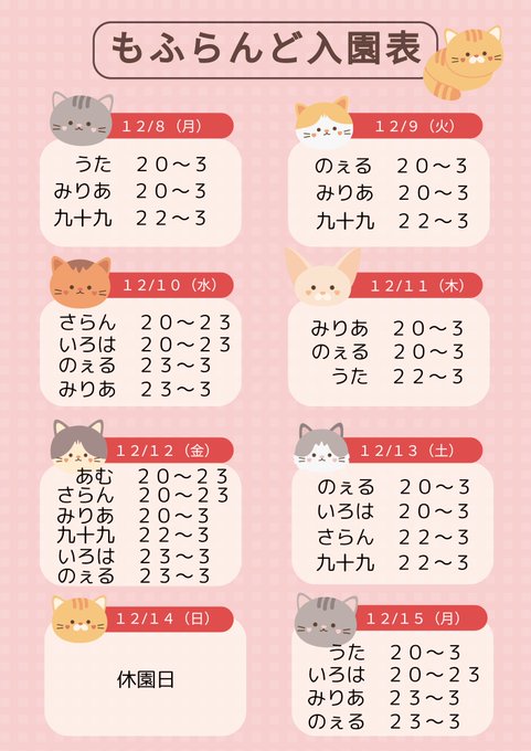 旭川・帯広 もふらんどあにまるコンカフェ【もふらんど🐾】帯広@animal_mofuland·【🎀本日のあにまるちゃん🐾】 🐈⬛ さらん 20〜23 🐈⬛ いろは 20〜23 𓃠 のぇる 23〜3 𓃠 みりあ 23〜3 12月10日(火)💝 ✅20:00-3:00 -𝙊𝙋𝙀𝙉- 本日ツーオペらんどです☘️ ご来園お待ちしております🎶 #もふらんど #コンカフェ #帯広1149