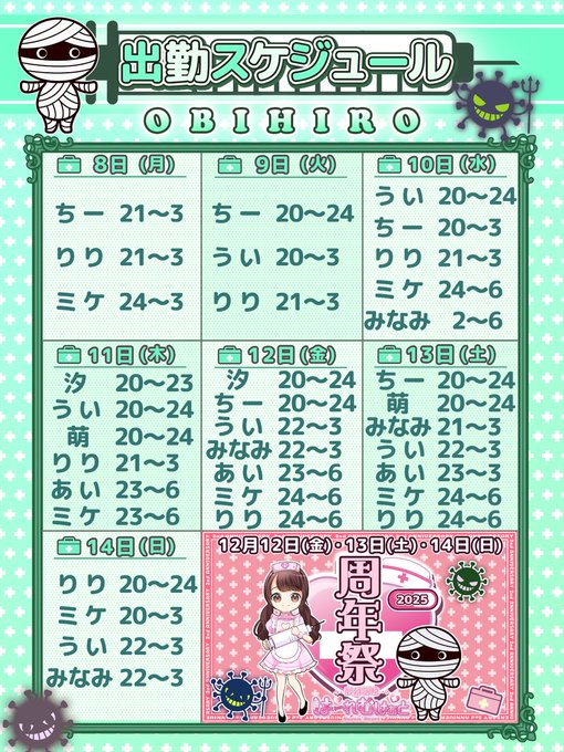 札幌・すすきの ヴォラビス魔法学校コンセプトカフェヴォラビス魔法学校@volabis_school·12月”前半”出勤予定表です🌟 前半残り3日………((339