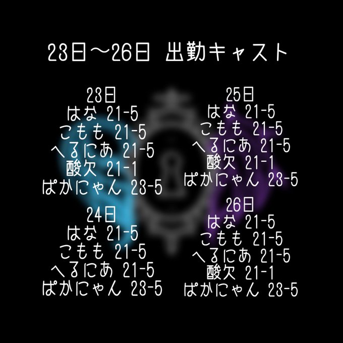 アニソンバーギルド🎤仙台国分町 コンカフェ@guild_sendai·7月23日(水)ログインメンバー 🎹かをる(@kwr_kd )19-23 🔰ういは(@mofru_107097)19-23 🎤りのん(@rinon_guild )22-3 🦇しゆん(@guild_shiyun )23-5 皆様のご来店お待ちしております✨ #仙台コンカフェ #国分町 #コンカフェ仙台14230