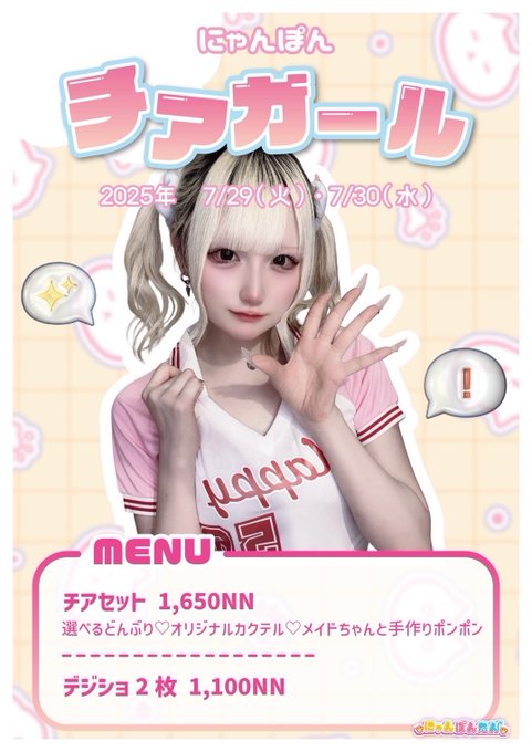 仙台にゃんこメイドカフェ♡にゃんぽんたん@tw_nyanpontan·おはにゃ🐱 Cafe ぽぽ みらい むぎ たよ ことり まる かのん CafeBar やみ ねむ Bar ちる ぽめ なのは ぴん なる うさ なちゃ せな うゆた じゅり 会員限定30分延長サービスだにゃん1281,315