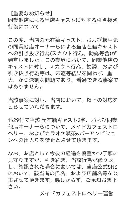 メイドカフェストロベリー【公式】@Strawberry0210f·【重要なお知らせ】 #拡散希望46254