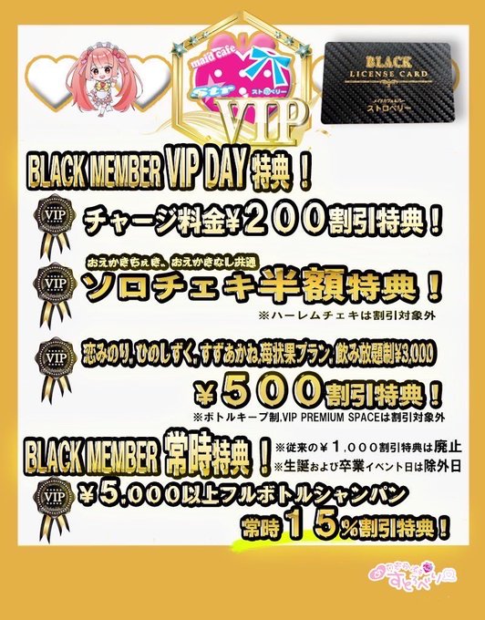 メイドカフェストロベリー【公式】@Strawberry0210f·2025年12月1日(Mon) BLACK 会員限定 VIP DAY 14時 まむ-21 15時 ことは-20 15時半 うらら 18時 めう、るい 19時 くれあ14213
