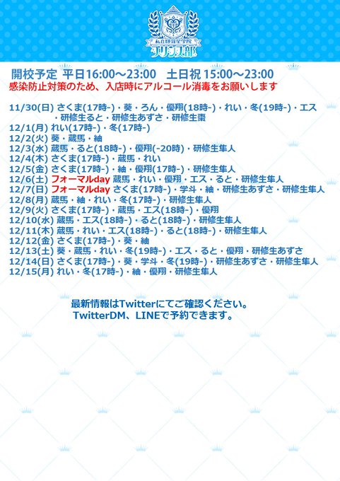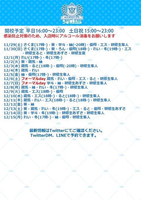 秋葉原・神田 私立輝羅星学院プリンス部私立輝羅星学院プリンス部@kiraboshiprince·【開校予定】登校予定を更新しました イケメンの男装部員がカフェでお待ちしています 入り口にアルコールジェルを設置してありますので、ご利用ください DM、LINEでカフェの予約が出来ます13199