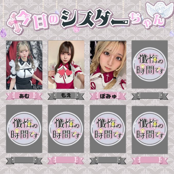 秋葉原・神田 懺悔の時間です懺悔の時間です☦️秋葉原コンカフェ☦️@zange_akb·☦️今日のシスターちゃん☦️ 11月30日 Sun 18:00 OPEN✨ あむ@zange_amu もえ@zange_moe ぽみゅ@pomyu_zange119