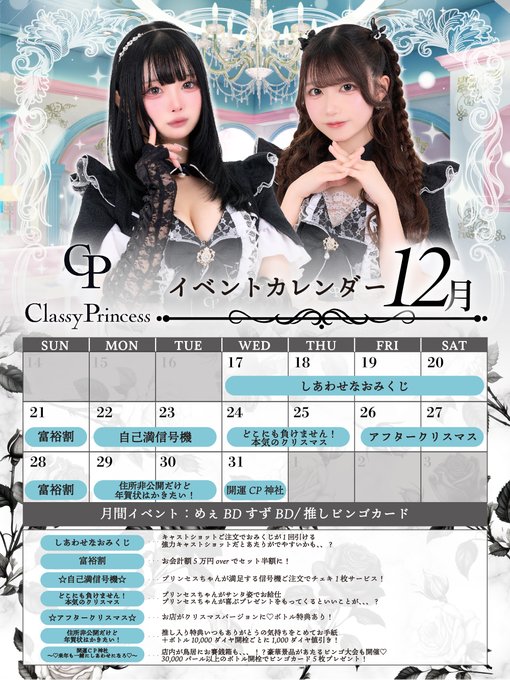 Classy Princess 12月カレンダー · · ───── ·✧· ───── ·