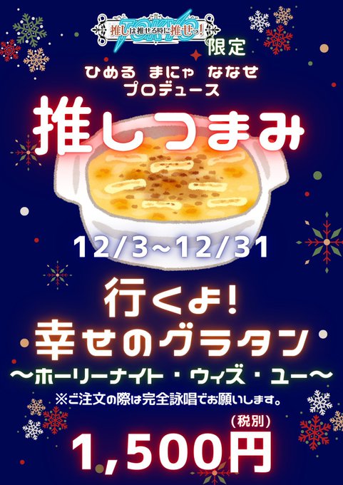 推し推せっ!KABUKI@oshiose_tokyo·12月14日(日)⏰営業時間18:00〜23:30🫶🏼 🎀推し推せ歌舞伎店🎀 @oshiose_tokyo ⛷❄️ゲレンデマジック⛷❄️ 🍲推しつまみ🍲 18:00 まにゃ @manya_oshiose ここね @kokone_oshiose 乖離 @kairi_oshiose ゆりあ @yuria_oshiose るうさらに表示119576