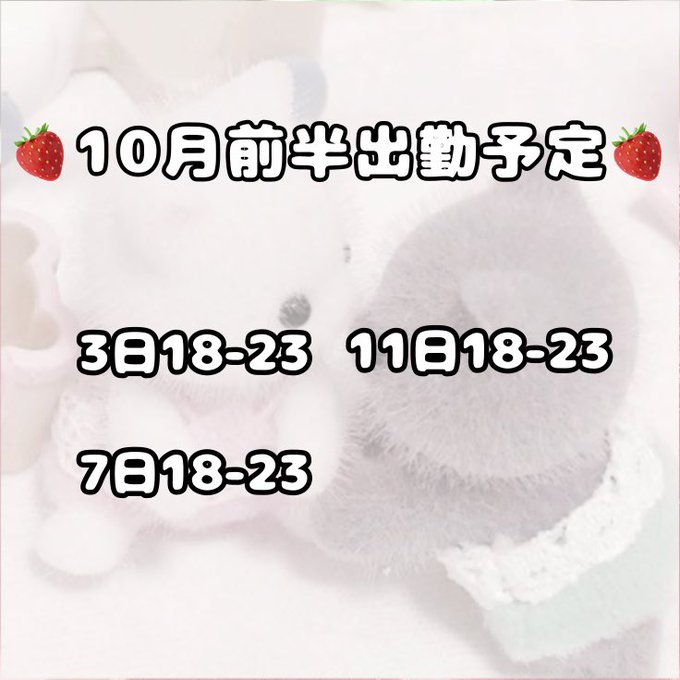 秋葉原・神田 Cuteierあやめ@1ym_Hug·♡10月前半の出勤予定になります♡ 今月から23時までいます〜♪ よろしくお願いします( ᴗˬᴗ)2266