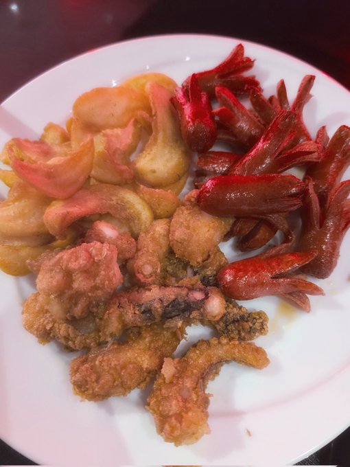 ☁️さな☁️@sana0902090·サイゼのエスカルゴ ディアボラ風ハンバーグ ライス 辛味チキン 肉まん 蒲焼さん すき家のまーらーたん 海鮮丼 明太子のトルティーヤ、これを食べてもまだ腹ペコで今これ19