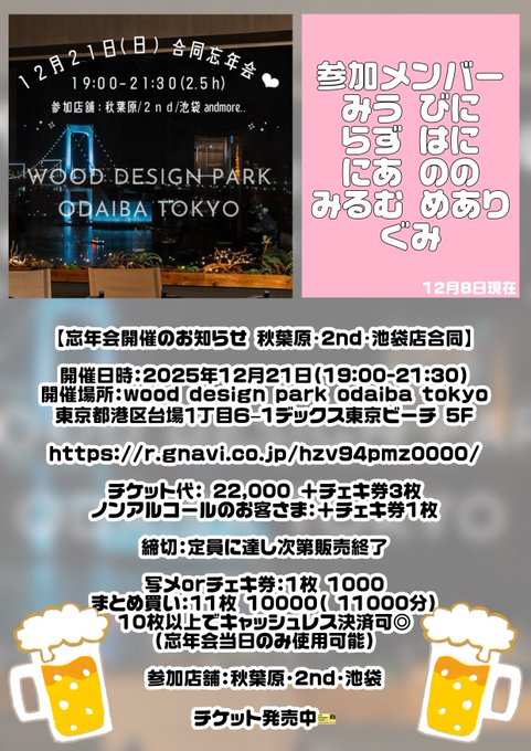 秋葉原・神田 幽遊屋敷 秋葉原 男装・メンズコンカフェしまっぽ🏝幽遊屋敷@yuyu_shima_·3時間浮遊👻 缶をたくさん飲みましょうの日! スラット飲みたいスラット。 #男装 #男装喫茶 #男装カフェ #コンカフェ #中性 #秋葉原 #アキバ #メンコン引用幽遊屋敷👻男装コンカフェ@uuyashiki_danso·6時間12月8~11日のイベントはこちら! 🎄缶でクリスマスツリーを作ろう!🎄 イベント期間は缶物が『2200魂』に⁉️ お得な時に来るしかない! 卓でどでかいクリスマスツリーを作ろ! #男装 #男装カフェ #男装喫茶 #男装コンカフェ #コンカフェ #コンセプトカフェ #コンカフェ営業 #秋葉原1260