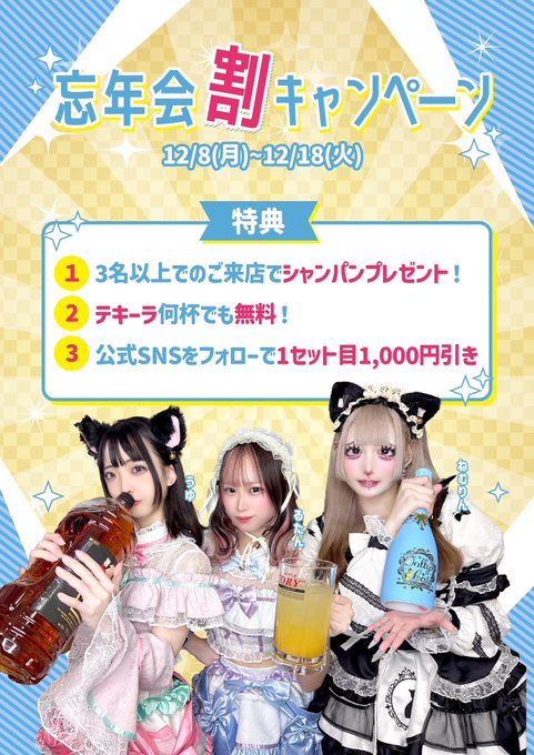 秋葉原・神田 Dolly CatsDollyCats ドーリーキャッツ🐈⬛秋葉原コンカフェさんがリポストうゆ@ドーリーキャッツ🐾@dolly_uyuyu·おきゅいん!!! 忘年会キャンペーンしてますჱ̒^> ·̫