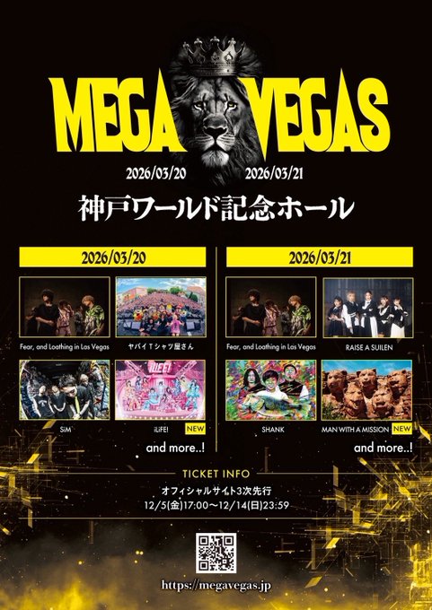秋葉原・神田 Dolly Catsりあむ🩵@ドーリーキャッツ@dolly_riamu·10時間SiMとiLiFE が交わることって あるんですね 何これは引用正方形のプロフィール画像iLiFE!【あいらいふ】@iLiFE_official·11時間なんと! 2026年3月20日に開催される MEGA VEGAS2026 にiLiFE!の出演が決定しました❕ 激アツフェス、あいらいふがさらにアチアチ空間にしちゃいます❤️🔥 ▼12月5日17時〜 オフィシャル3次抽選先行受付開始! https://eplus.jp/megavegas/ ▼オフィシャルサイトはこちら http://megavegas.jp #iLiFE1174,040