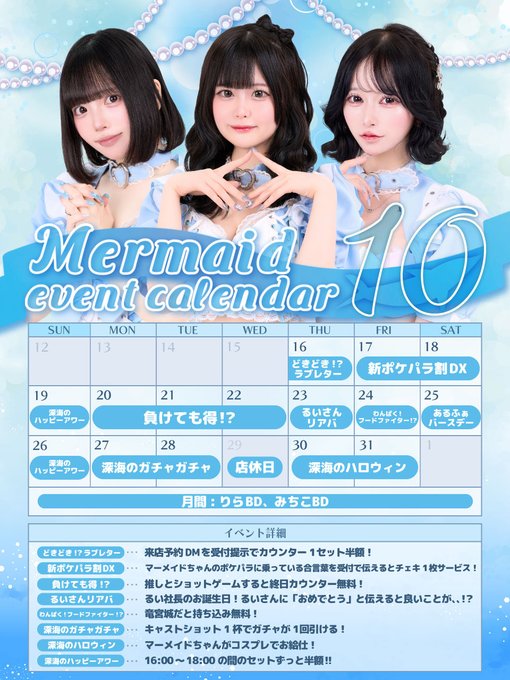 秋葉原・神田 マーメイド 秋葉原コンカフェ固定ありさ@マーメイド@mermaid_arisa·遅れました💦 10月後半の出勤予定です🐈⬛🎀 今月はハロウィンあるから見に来てください👻♡2156